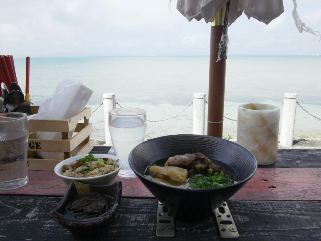 こちらは海を眺めながら沖縄で食べた沖縄そば。